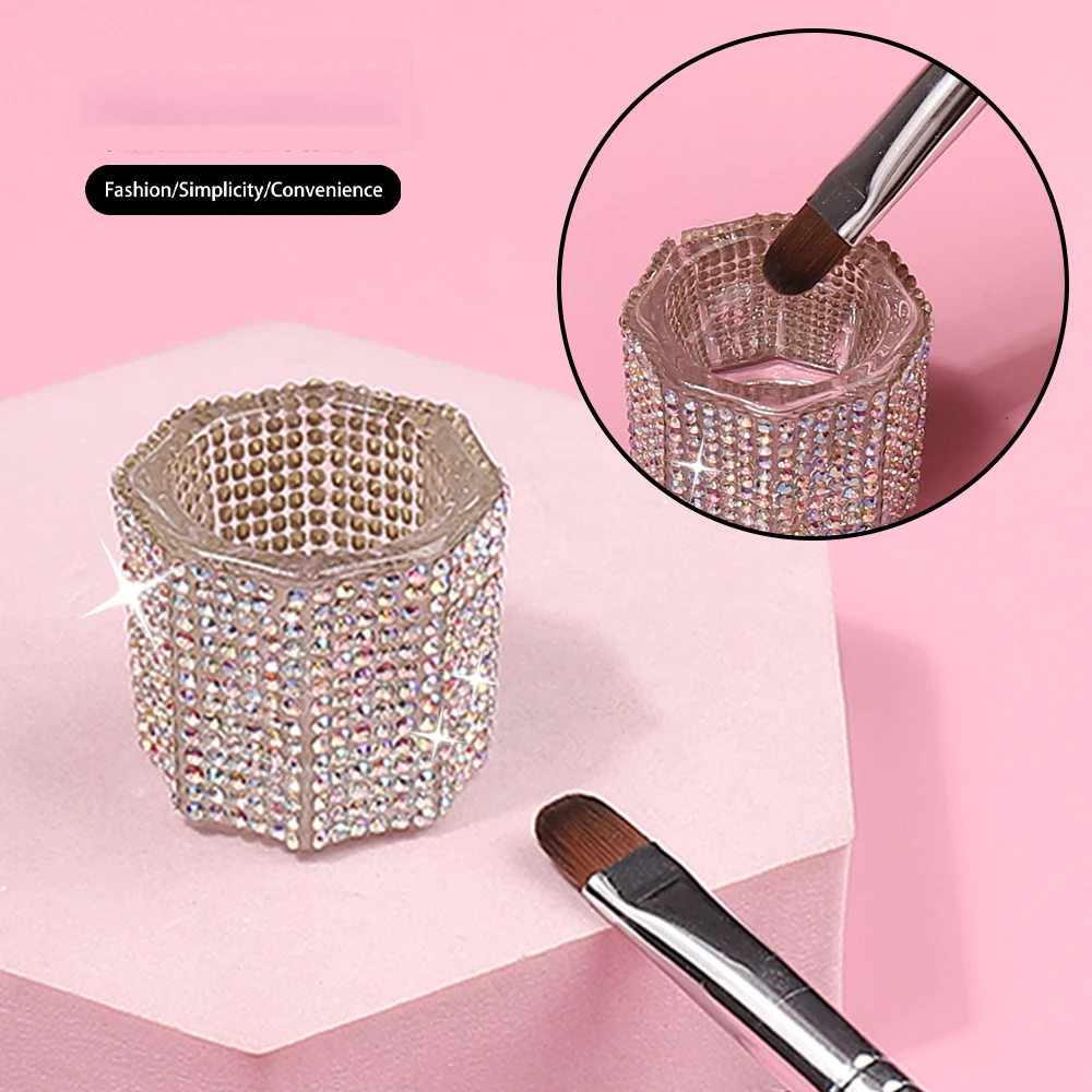 1PC Mini Crystal Glass Acrylic Small Octagonal Powder Liquid Nail Cup Nail Brush Clean Liquid Power Rhinestone Luxury Mixing Bowl